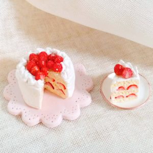 ミニチュア粘土-ミニチュアいちごのホールケーキ1