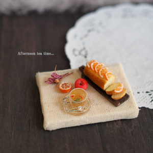 202404-06ミニチュア粘土-ミニチュアパウンドケーキのティータイムセット