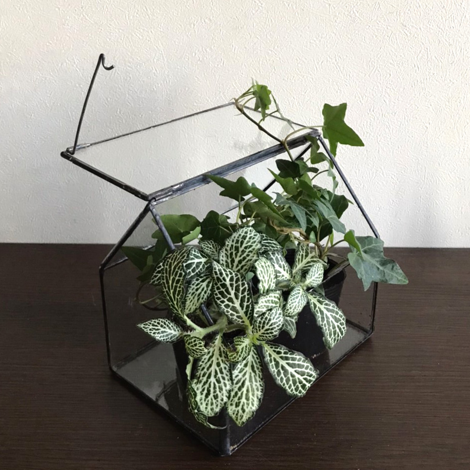 ガラス板をハンダで繋ぎ合わせていくステンドグラス工法でお洒落なガラスのテラリウムケースを手作りしてみませんか♪