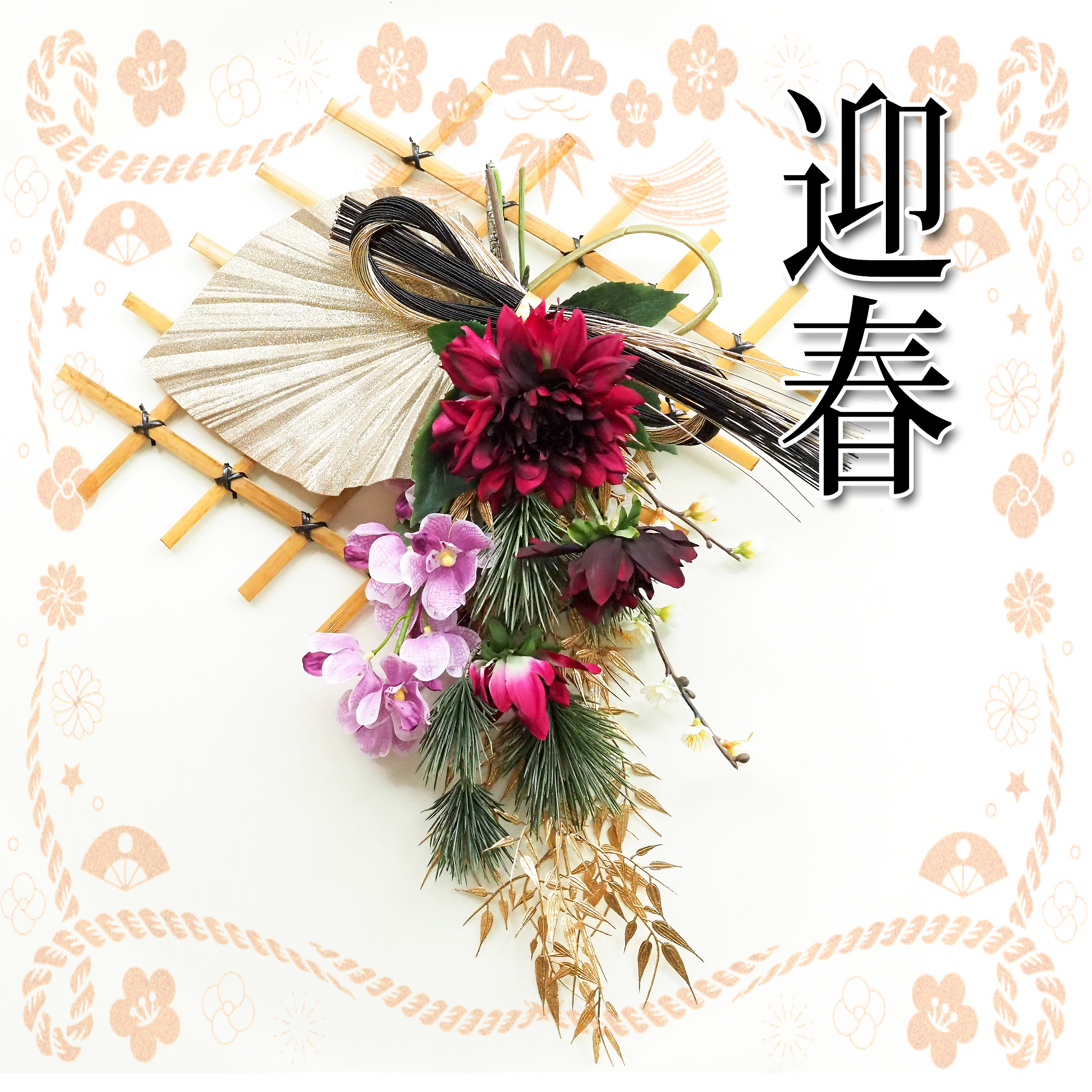 アーティフィシャルフラワーアレンジメントー2025新春を彩るスワッグ