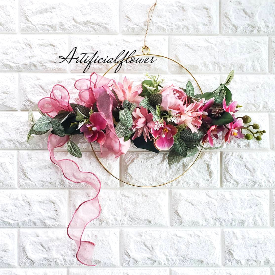 アーティフィシャルフラワーアレンジメントーリングの壁掛け